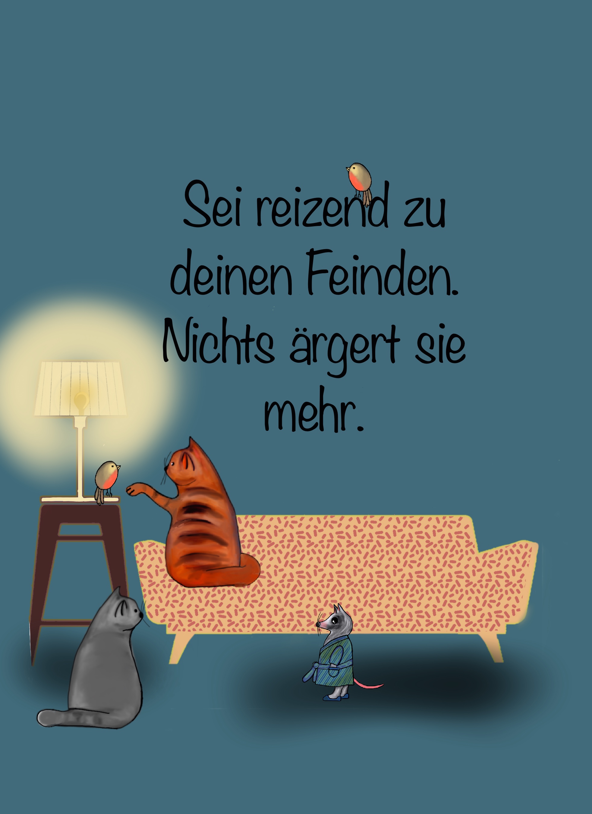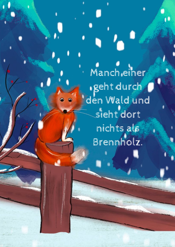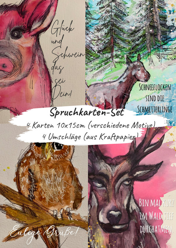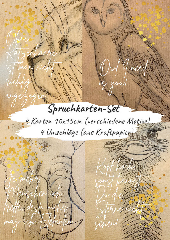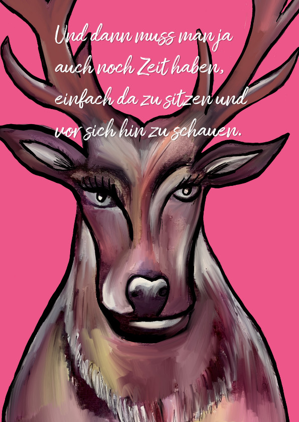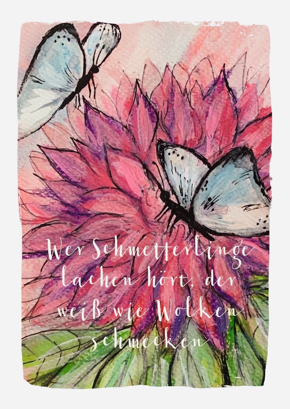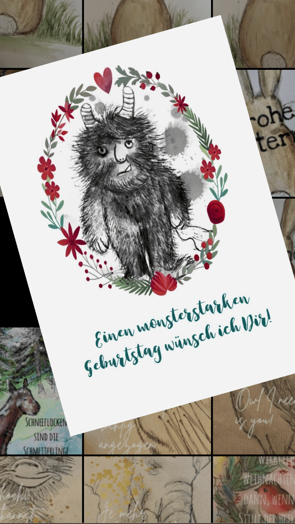 Anfänglich noch mit Aquarellfarben, liebe ich es mittlerweile, digital zu zeichnen und kann so mit meinen Figuren eine ganze Reihe an unterschiedlichsten Bildern mit den unterschiedlichsten Botschaften oder Stimmungen gestalten. Meine Leinwand ist mein Tablet und meine Kunst nur einen Klick entfernt. Mit Sprüchen und Zitaten werden meine Bilder zu bezaubernden Gruß- oder Affirmationskarten. Ob digital oder gedruckt – sie machen zu den verschiedensten Anlässen etwas her.„Jede Kunstform auszuüben, egal wie gut oder schlecht, ist ein Weg, die Seele wachsen zu lassen, um Himmels willen. Also tu es.“ – Kurt Vonnegut