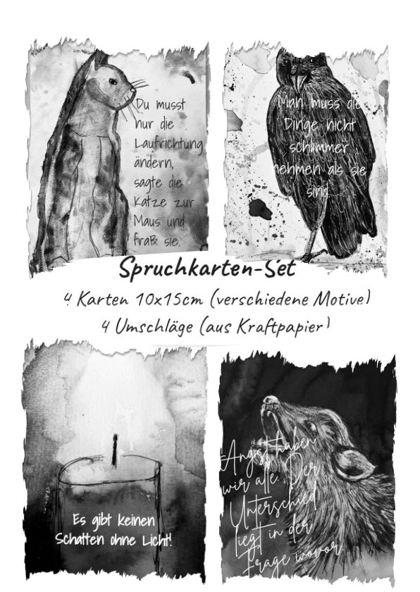 Meine klassischen Grußkarten drucke ich als Einfachkarten auf Hahnemühle Künstlerpapier im Format 10x15cm. Es gibt sie einzeln oder im Set mit passenden Umschlägen aus Kraftpapier.